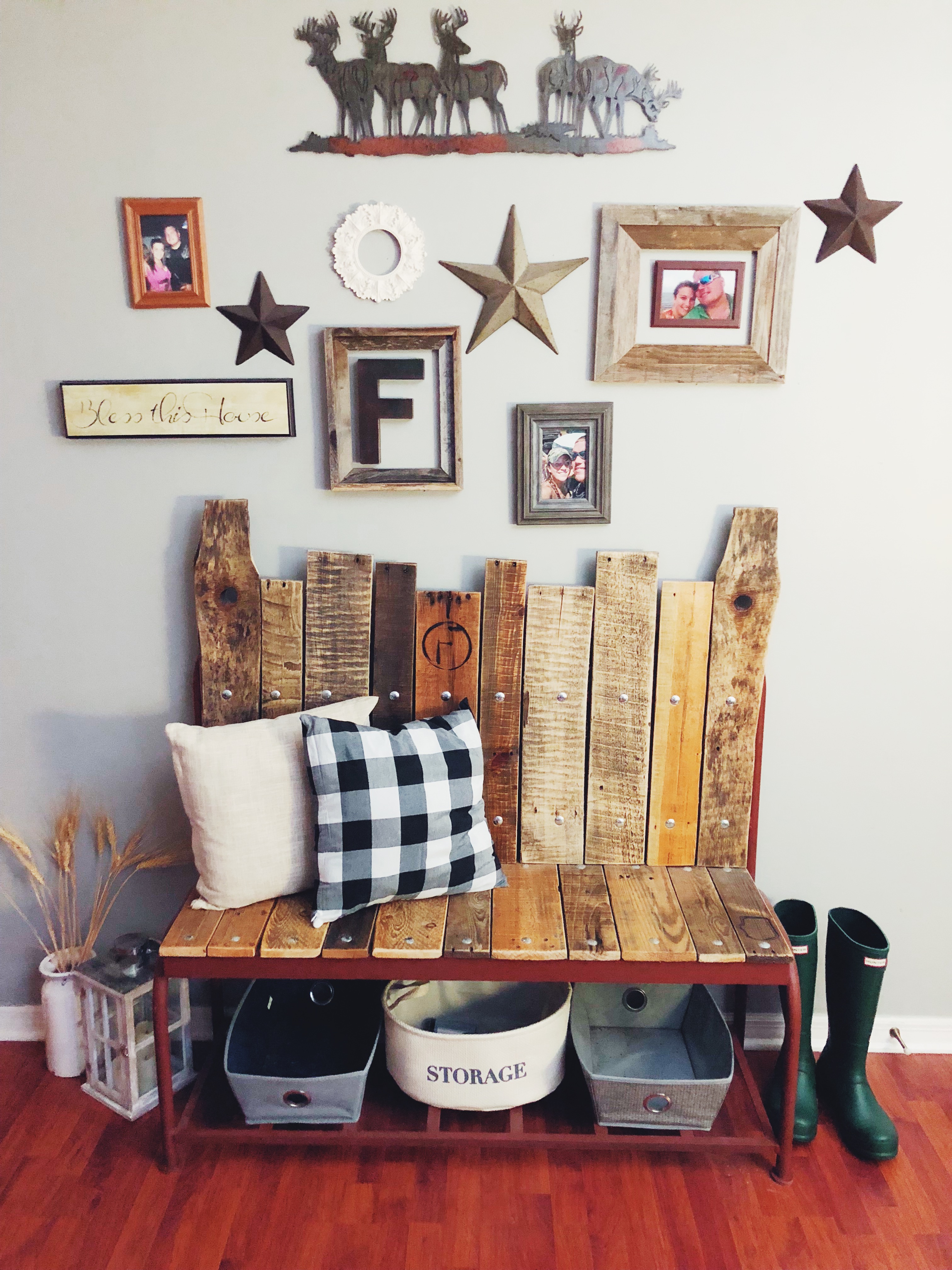“We had Circle S Farms make us a Homegrown Bench with added storage underneath! Makes getting out the door so much easier and it is beautiful!”